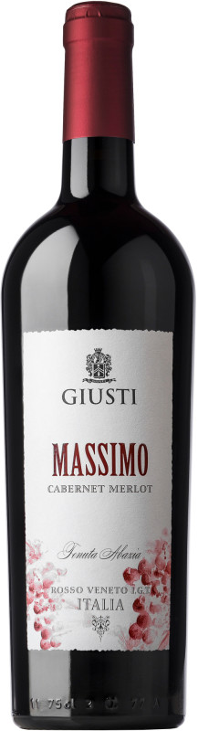 Suché talianske červené víno Giusti Massimo IGT Rosso del Veneto s jasnou rubínovo červenou farbou. Vyrába sa z najkrajších strapcov hrozna Cabernet Sauvignon a Merlot z oblasti Aria Valentina, vinohradnícka oblasť Veneto, Taliansko.