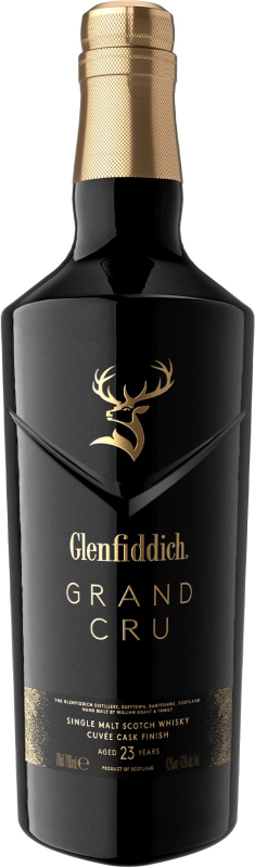 Exkluzívne vydanie škótskej single malt whisky Glenfiddich Grand Cru, ktorá dlhých 23 rokov zrela v amerických a európskych dubových sudoch. Zrenie však elegantne zavŕšila dodatočným 4 mesiacmi v raritných sudoch po francúzskom cuvee.
