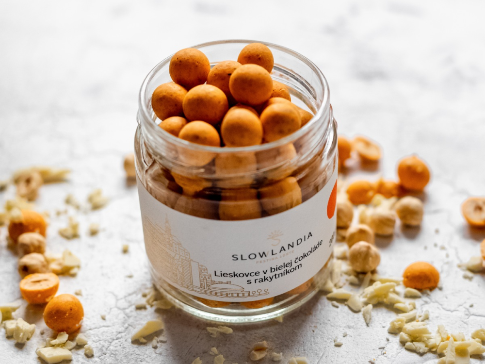 SLOWLANDIA – Lieskovce v bielej čokoláde s rakytníkom 200 g - trikrát ručne triedené, starostlivo upražené, chrumkavé lieskovce, majstrovsky obalené v bielej čokoláde s lyofilizovaným rakytníkom. Prekvapí Vás príjemne kyslastá chuť rakytníka, po ktorej sa Vám na jazyku rozplynie chuť bielej čokolády a na konci zachrumká dokonale upražený lieskovec.