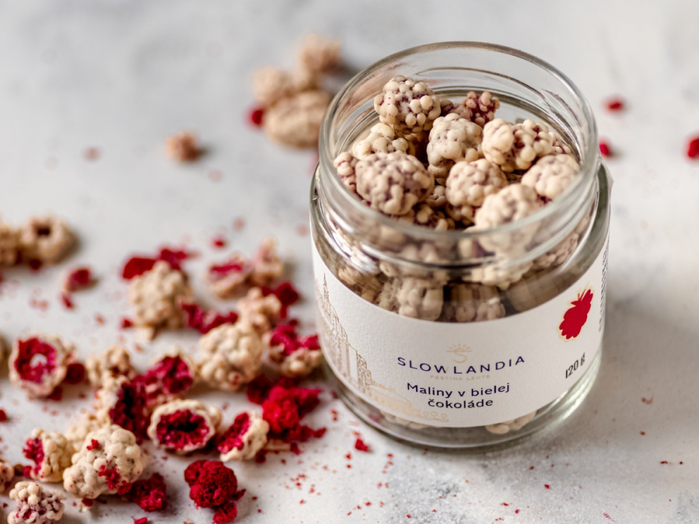 SLOWLANDIA – Maliny v bielej čokoláde 120 g - dokonalý kontrast medzi sladkosťou a jemnou kyslosťou, ktorý Vás uchváti už pri prvom súste. Kombinácia lyofilizovaných (mrazom sušených) malín a krémovej bielej čokolády vytvára jedinečný zážitok, ktorý poteší vaše chuťové poháriky. Letná limitovaná edícia, ktorú musíte jednoducho skúsiť.
