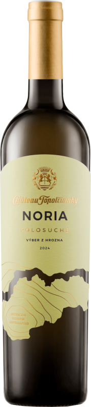 Biele polosuché víno Topoľčianky Noria je výber z hrozna, ročník 2024. Pochádza z vinárskej oblasti Strekov v rámci Nitrianskej vinohradníckej oblasti, kde terroir a geografia poskytujú ideálne podmienky pre moderné slovenské odrodové vína.